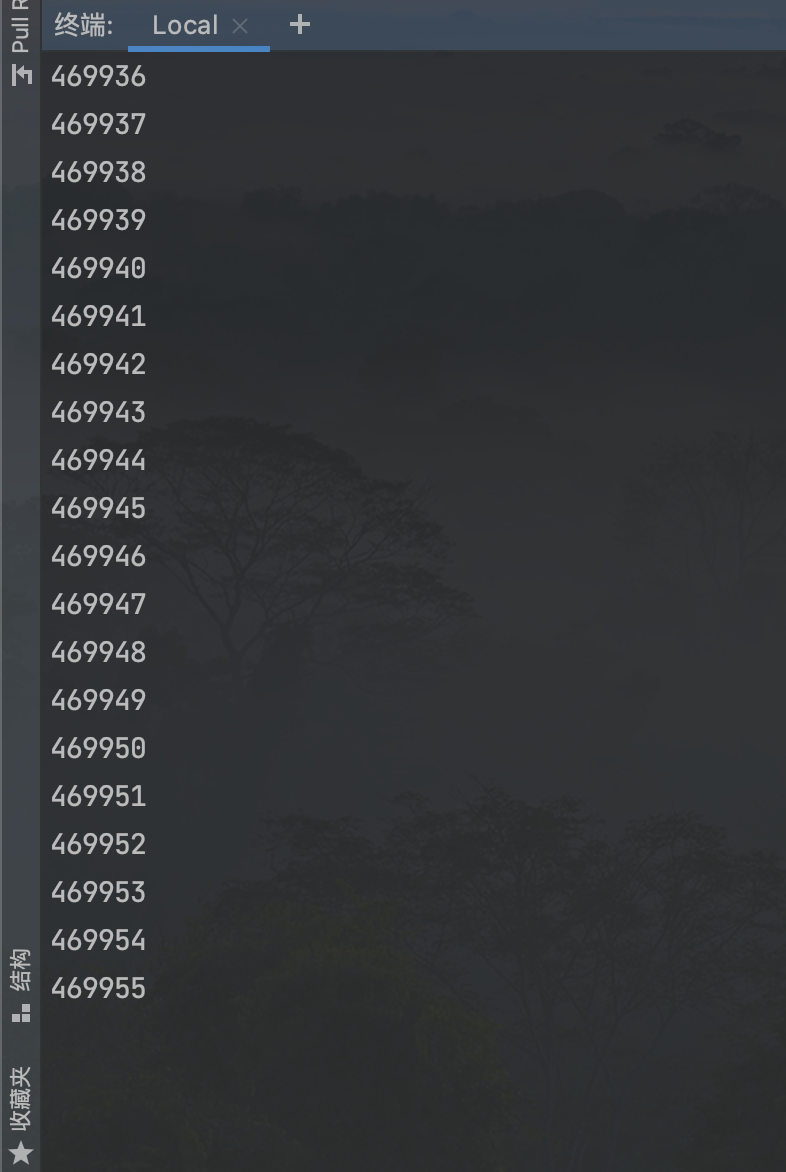 执行代码, 数字打印一段时间后,程序就“静止不动“了。