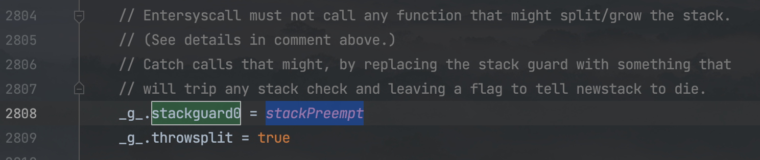 goroutine在创建之初,栈的大小是固定的,为了防止栈溢出的情况,编译器会在有明显栈消耗的函数头部插入一些检测代码。通过g.stackguard0来判断是否需要进行栈增长