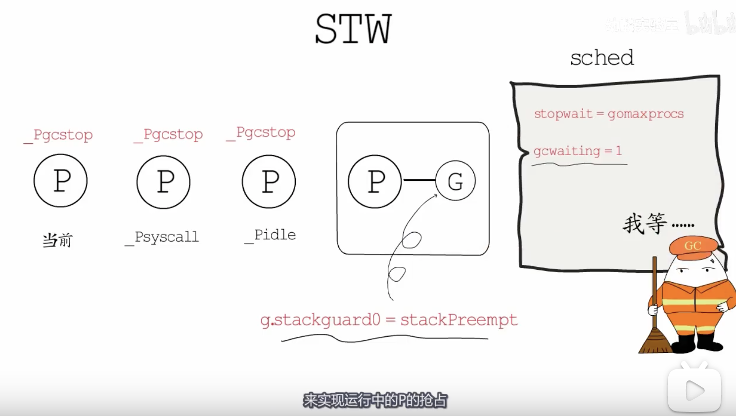 STW时,GC需要抢占所有的P,但这不是值日生喊一嗓子就能清场的问题。