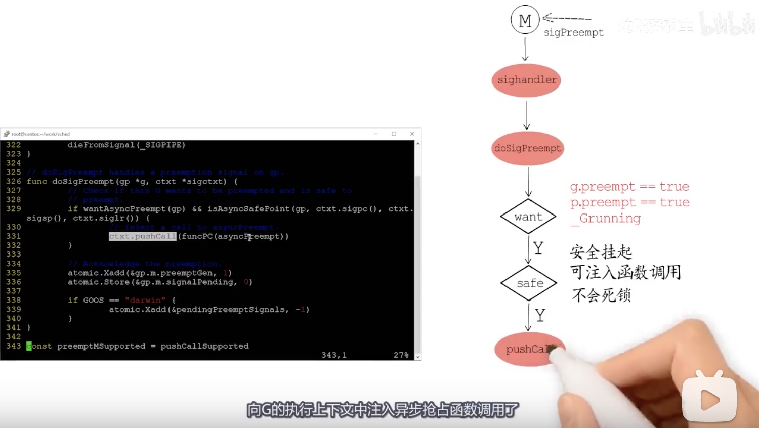 这三点都ok,就可以放心的通过pushCall向g的执行上下文中注入异步抢占函数调用了。
