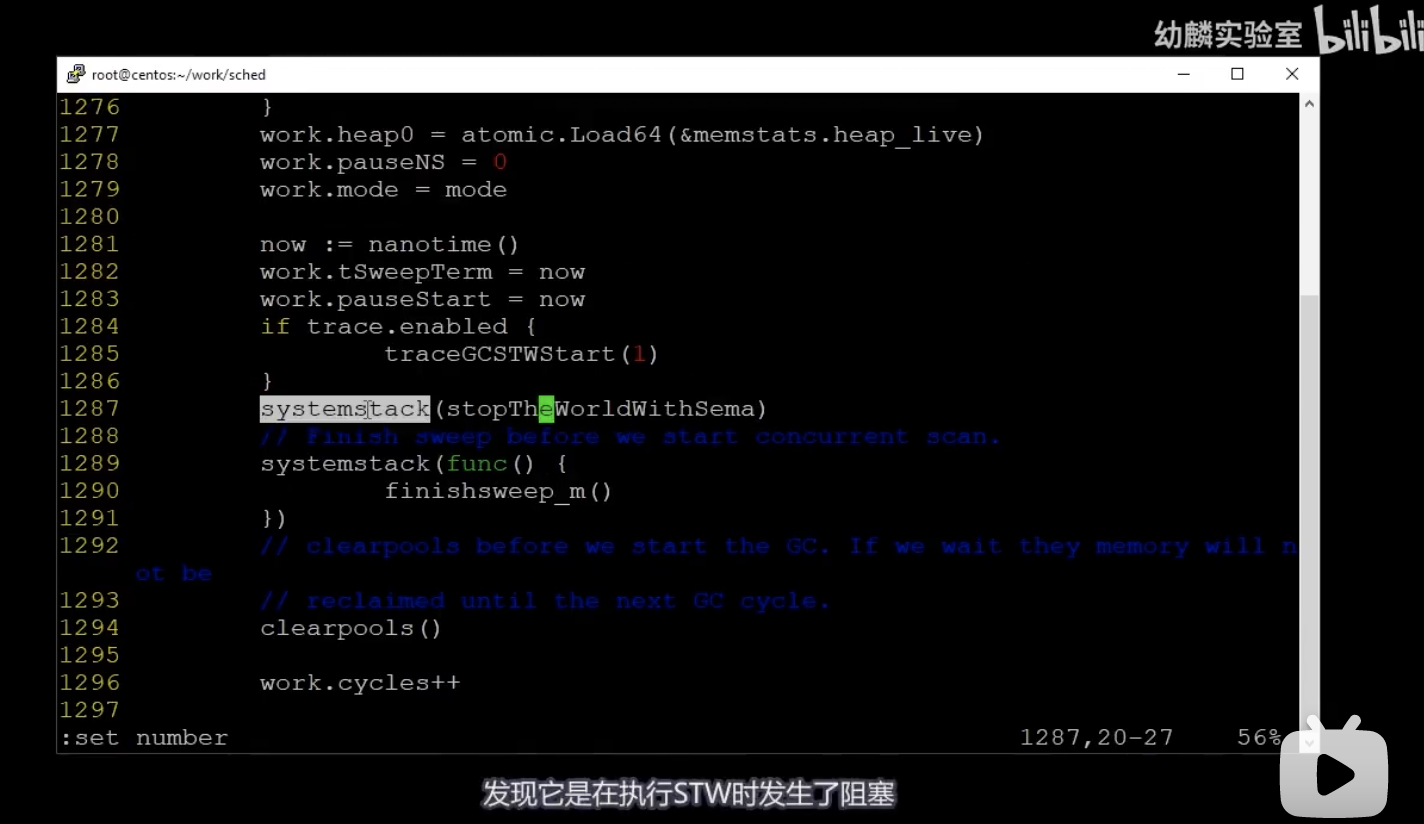 定位到这一行,发现是在执行STW时发生了阻塞。