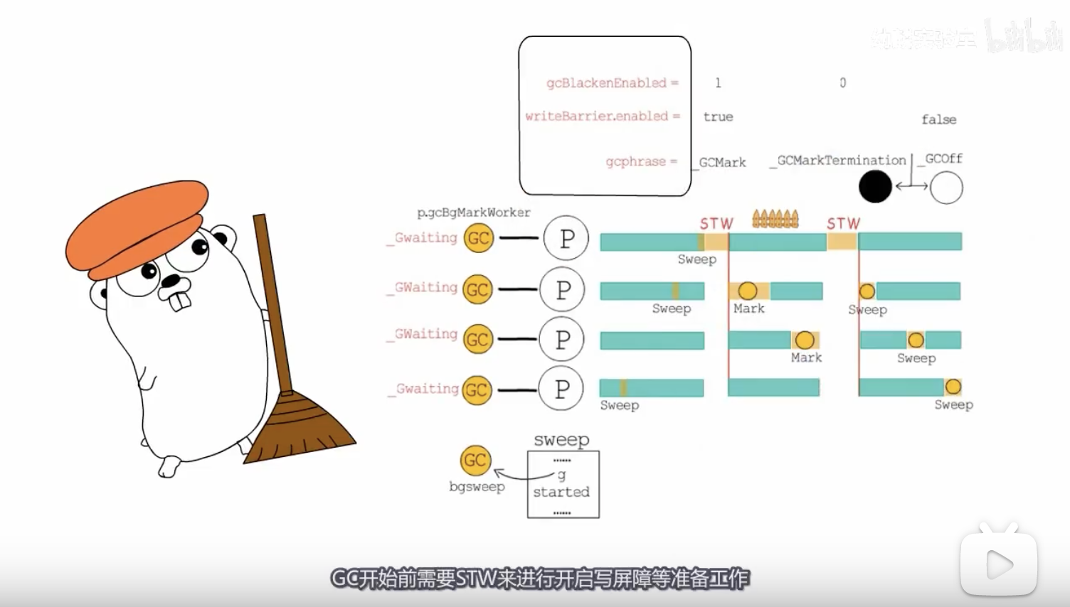 GC开始前需要STW来 进行开启写屏障等准备工作. 所以STW就是要抢占所以的P,让它们暂时放下手中的活儿,让GC得以正常工作。