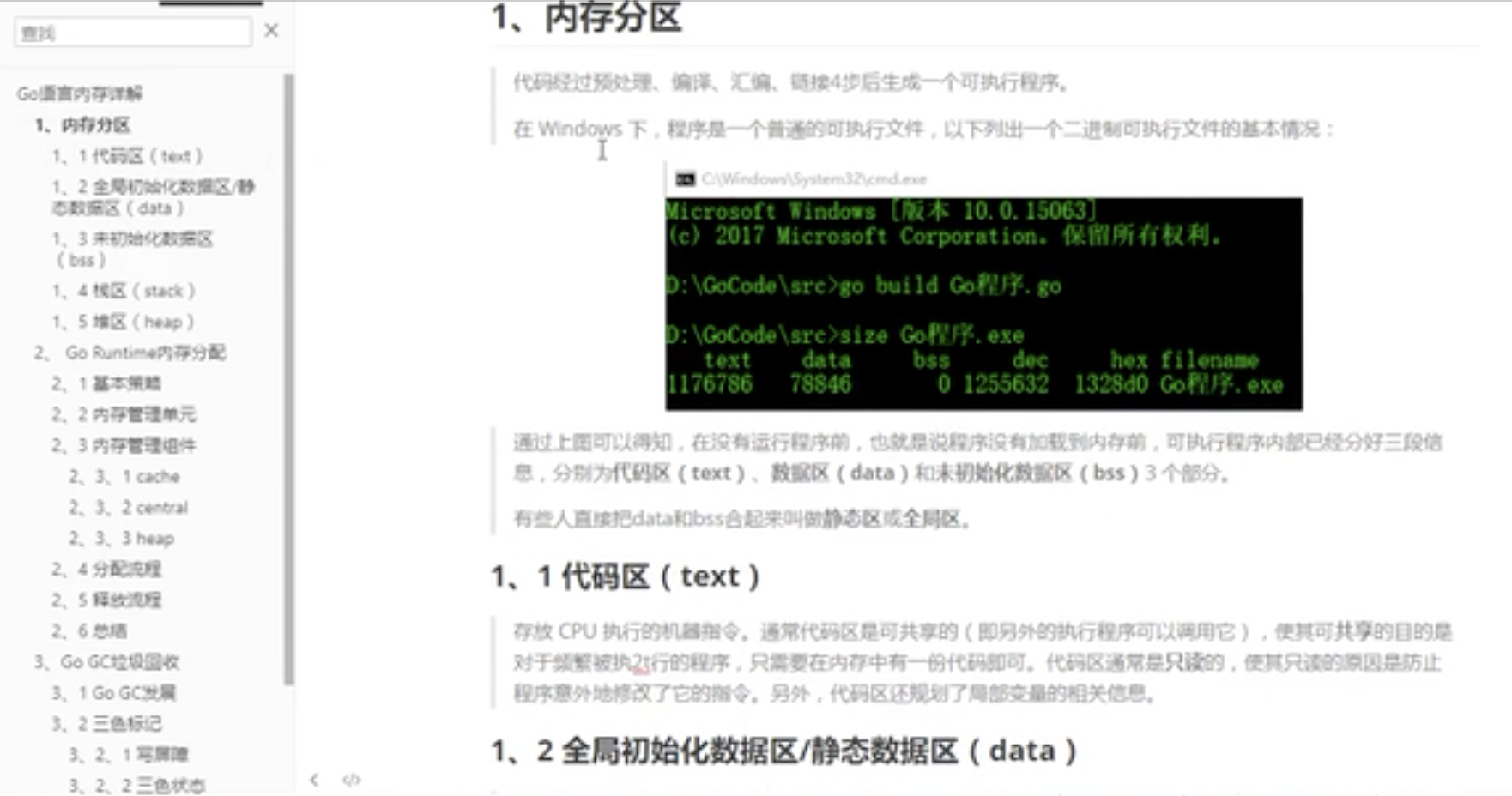 Go中bss为0,因为Go语言所有的数据,默认都是初始化的,如定义了一个字符串,其默认为””,因此是在data区域.