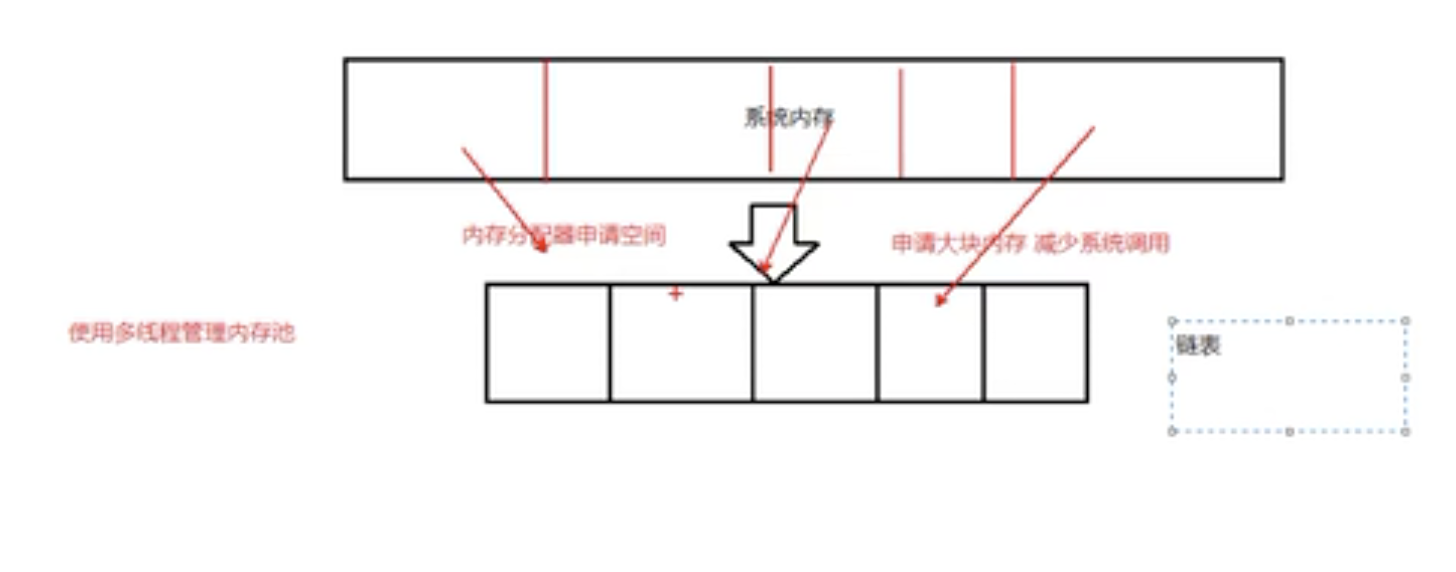 每次从操作系统申请一大块内存,以减少系统调用(并不一定是”大块连续内存”)