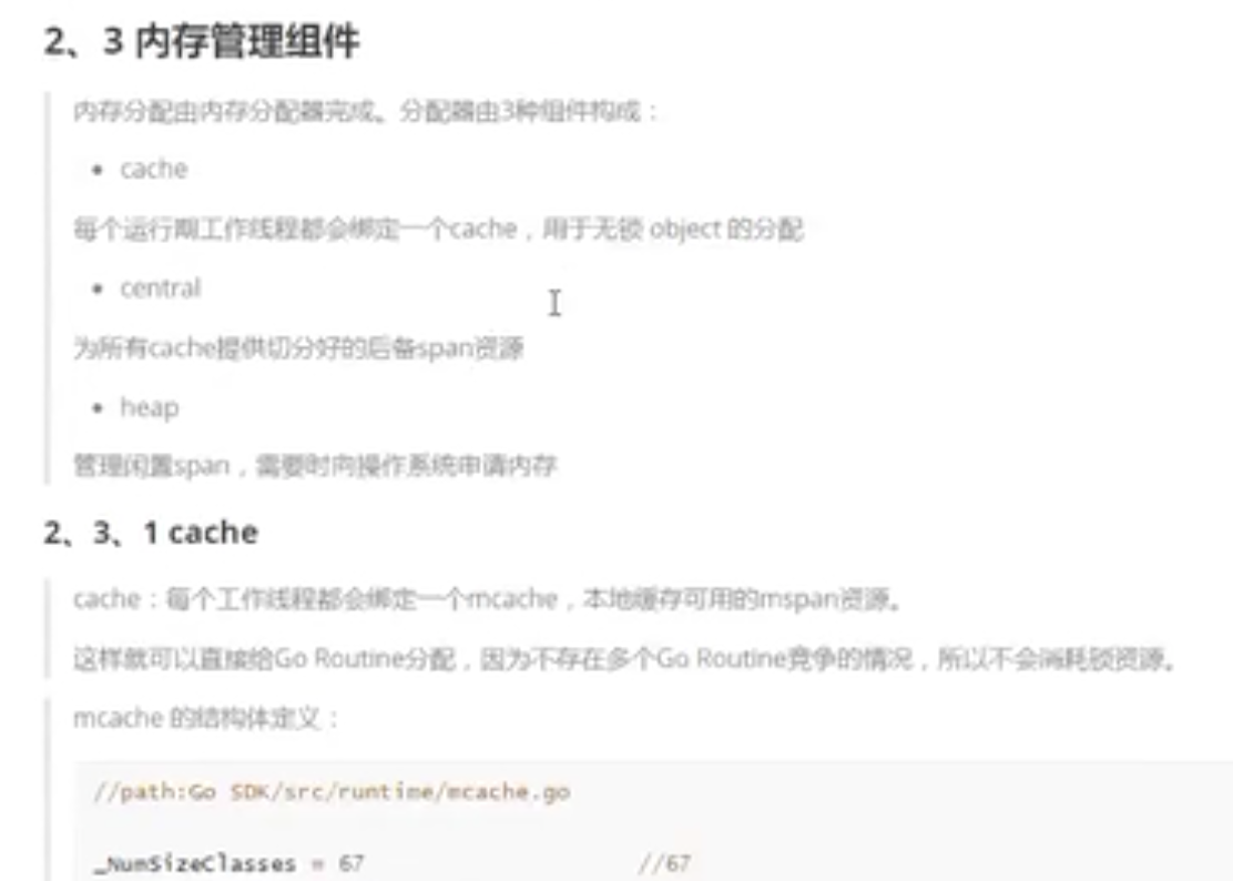 2.3.1 mcache:与P绑定,本地内存分配操作,不需要加锁