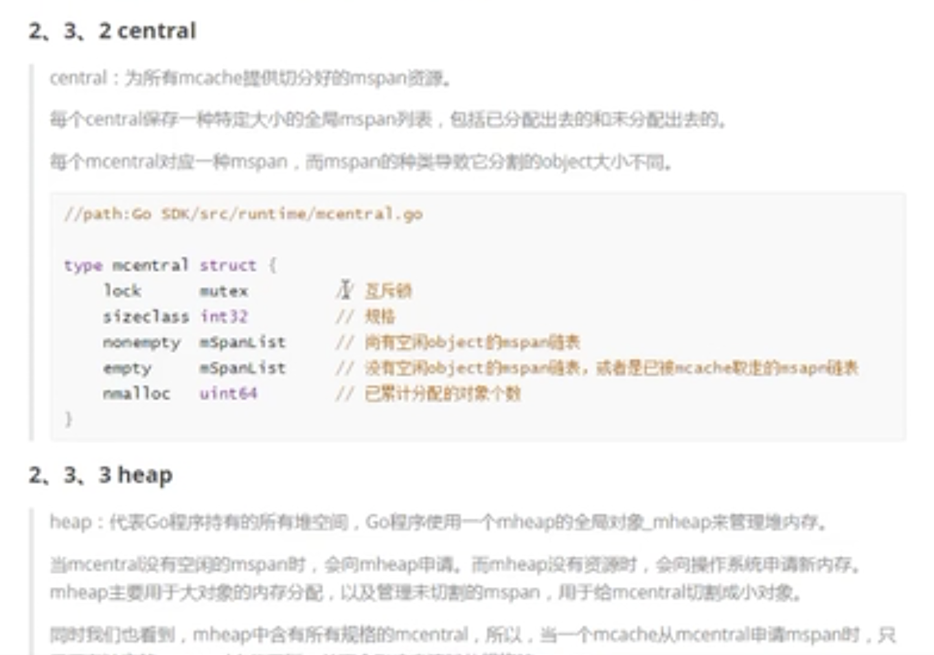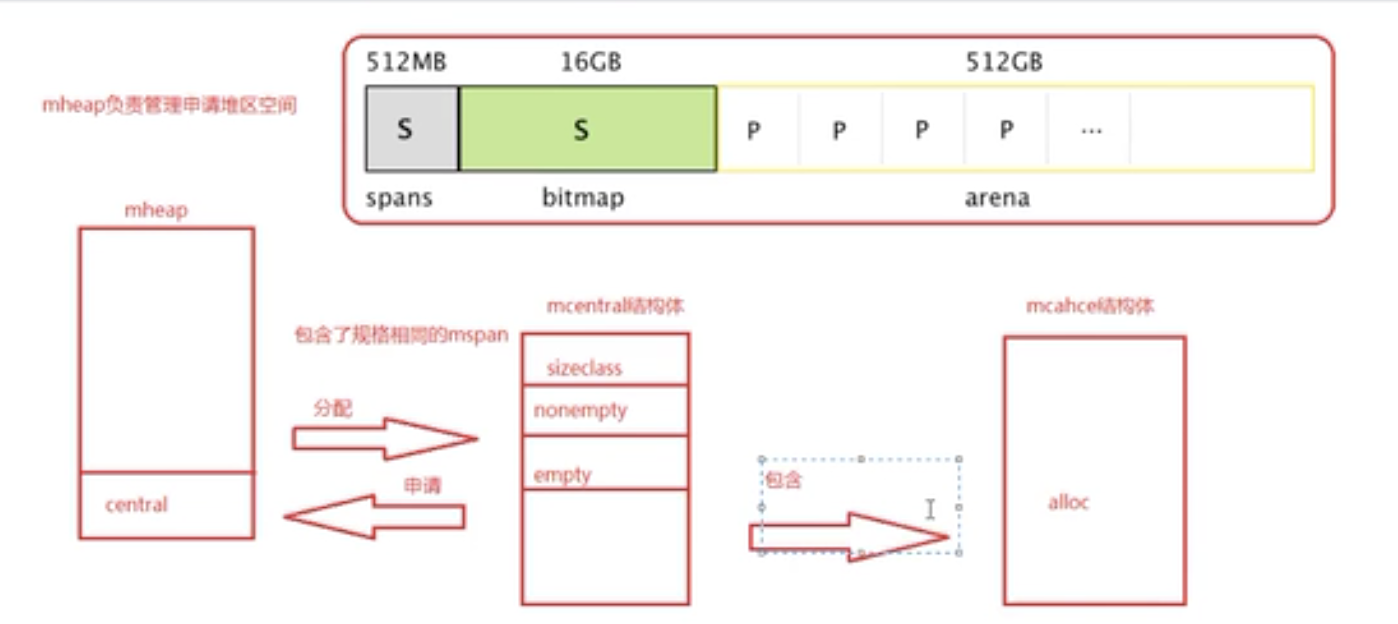 mcache,mcentral,mheap是go内存管理的三大组件,层层递进. mcache管理线程在本地缓存的mspan; mcentral管理全局的mspan供所有线程使用; mheap管理Go的所有动态分配内存.