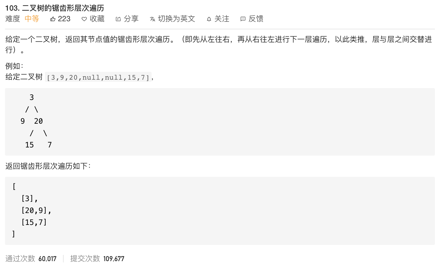原文链接: https://dashen.tech/2015/03/01/leetcode-103-二叉树的锯齿形层次遍历/