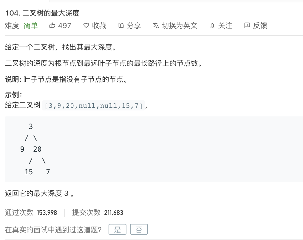 /** * Definition for a binary tree node. * type TreeNode struct { * Val int * Left *TreeNode * Right *TreeNode * } */ funcmaxDepth(root *TreeNode)int {
