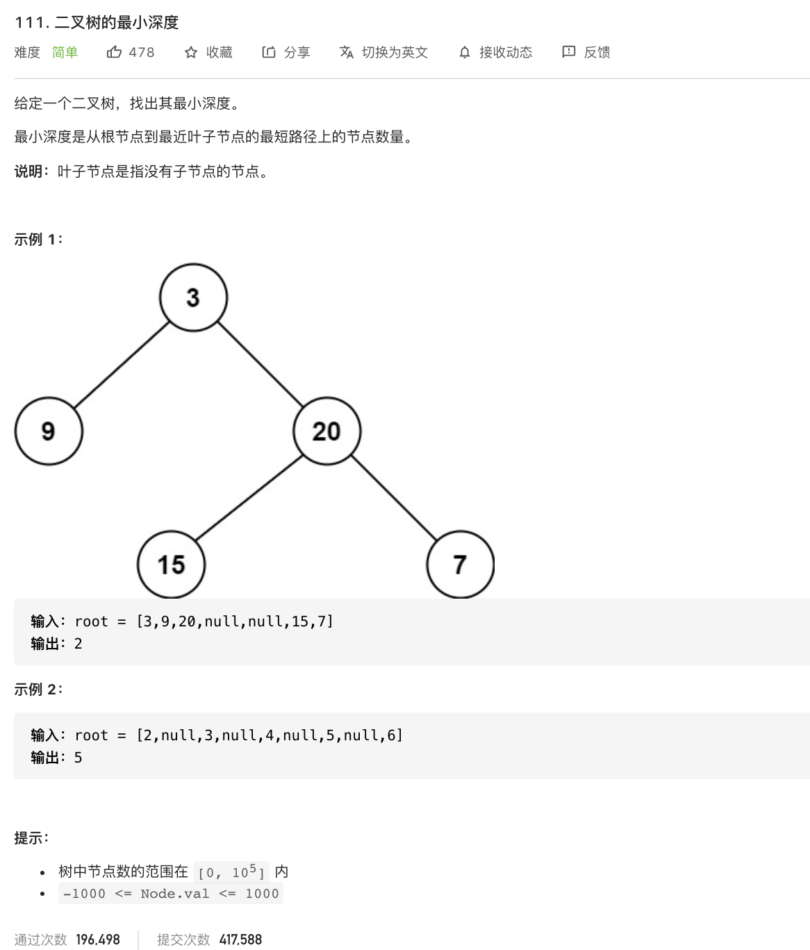 //之所以定义left和right,为了防止下面return时还有再次计算 left := minDepth(root.Left) right := minDepth(root.Right) if left > right { return right + 1 } else { return left + 1 }