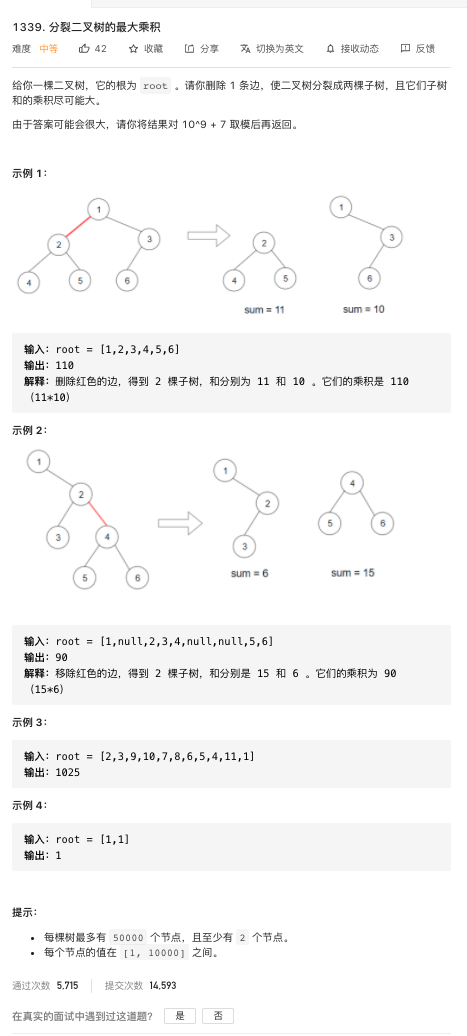 leetcode-1339 分裂二叉树的最大乘积 2015年03月01日 留言 复旦大学2021年软件工程专业研究生考试,出了这道题(第4题),20分 1339. 分裂二叉树的最大乘积 难度: 中等 文章目录 原文链接: https://dashen.tech/2015/03/01/leetcode-1339-分裂二叉树的最大乘积/ 版权声明: 转载请注明出处.