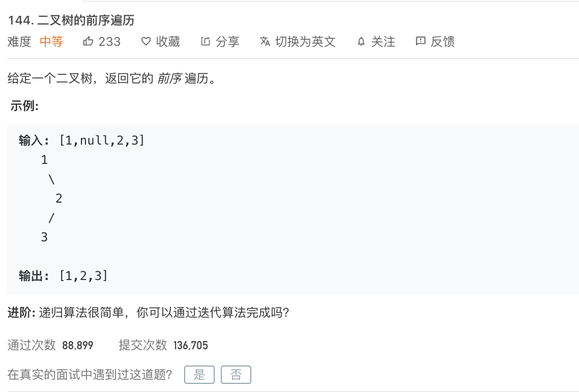 //递归调用,遍历左节点;temp用来承接返回的值 temp := preorderTraversal(root.Left) res = append(res,temp...)