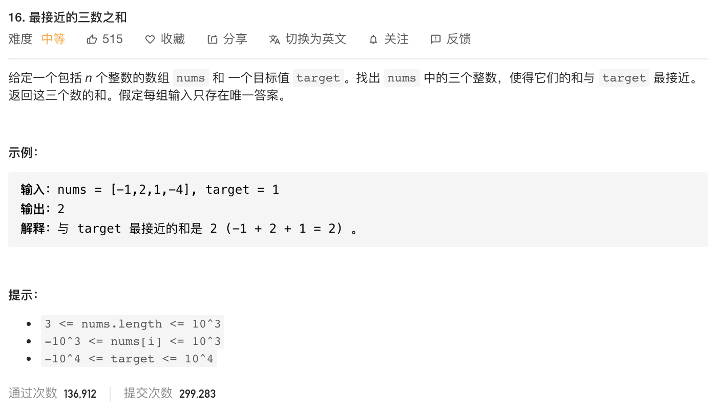 leetcode-16 最接近的三数之和 2015年03月01日 留言 16. 最接近的三数之和 难度: 中等 文章目录 原文链接: https://dashen.tech/2015/03/01/leetcode-16-最接近的三数之和/ 版权声明: 转载请注明出处.