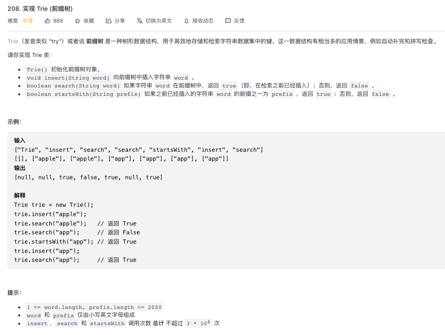 leetcode-208 实现Trie(前缀树) 2015年03月01日 留言 208. 实现 Trie (前缀树) 难度: 中等 文章目录 原文链接: https://dashen.tech/2015/03/01/leetcode-208-实现Trie-前缀树/ 版权声明: 转载请注明出处.