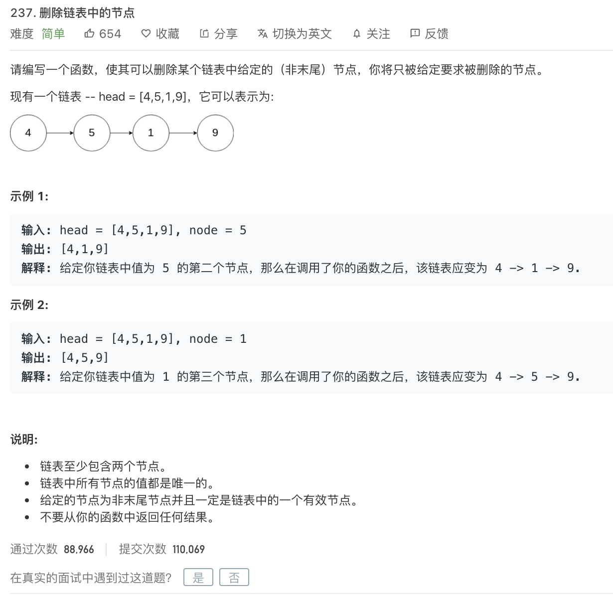 leetcode-237 删除链表中的节点 2015年03月01日 留言 237. 删除链表中的节点 难度: 简单 123456789101112131415/** * Definition for singly-linked list. * type ListNode struct { * Val int * Next *ListNode * } */func deleteNode(node *ListNode) { if node == nil { return } node.Val = node.Next.Val node.Next = node.Next.Next} 文章目录 原文链接: https://dashen.tech/2015/03/01/leetcode-237-删除链表中的节点/ 版权声明: 转载请注明出处.