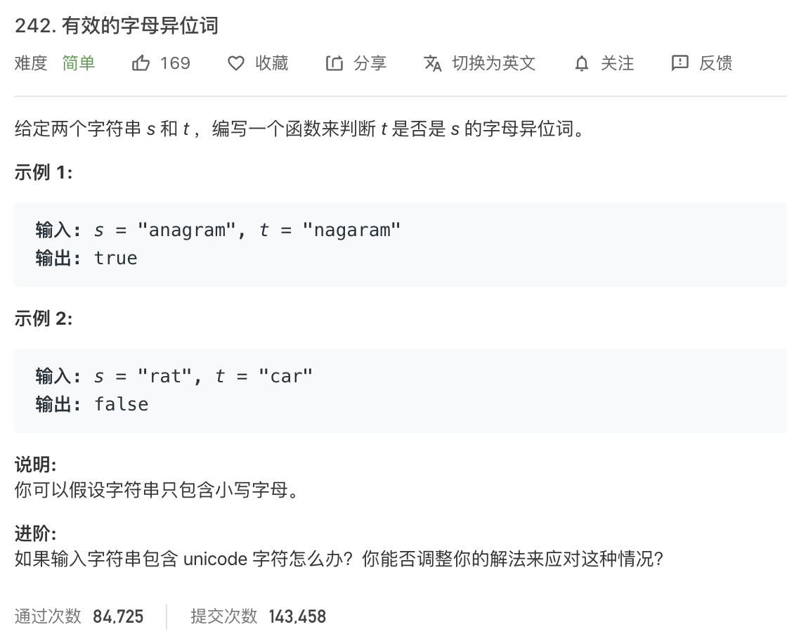 242. 有效的字母异位词