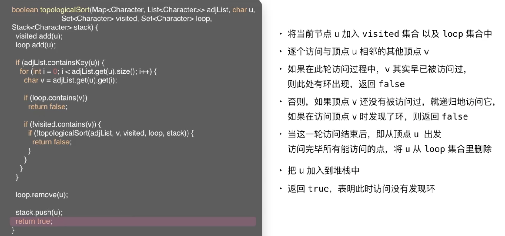 第三课用广度优先算法(Breadth First Search, BFS)实现了拓扑排序,在此用深度优先算法(Depth First Search,DFS)来实现