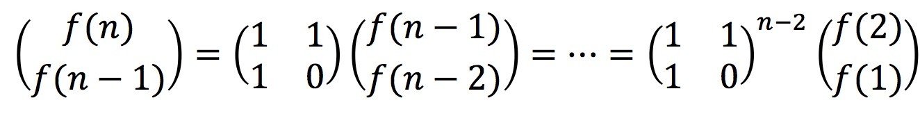 funcfib(N int)int { if N == 0 || N == 1 { return N } // first 是第0个和第1个元素 first := [][2]int{[2]int{0, 1}, [2]int{0, 0}} // temp为系数 temp := [][2]int{[2]int{0, 1}, [2]int{1, 1}} res := matrix22_pow(temp, N - 1) return matrix22_mul(first, res)[0][1] }