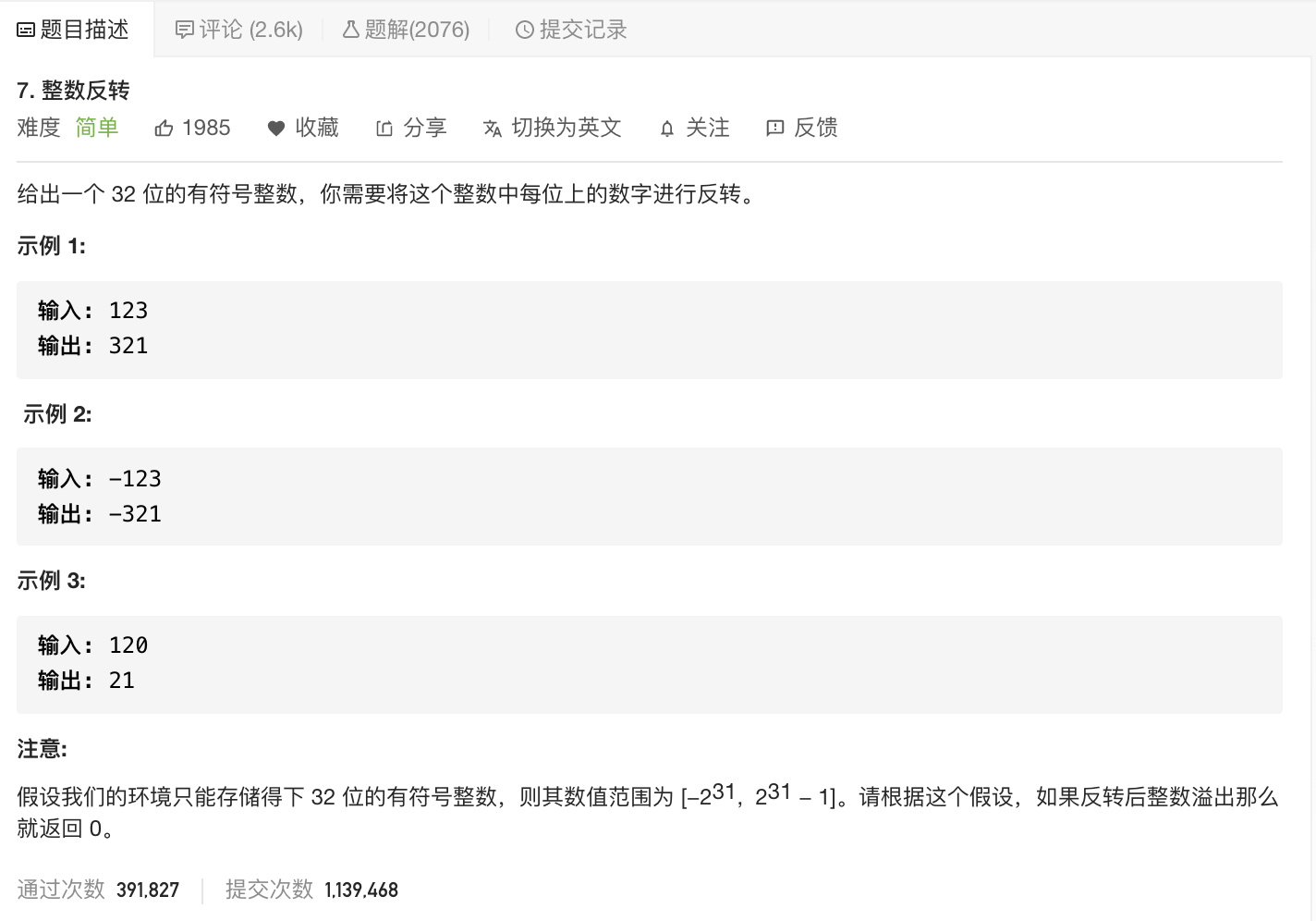 7. 整数反转