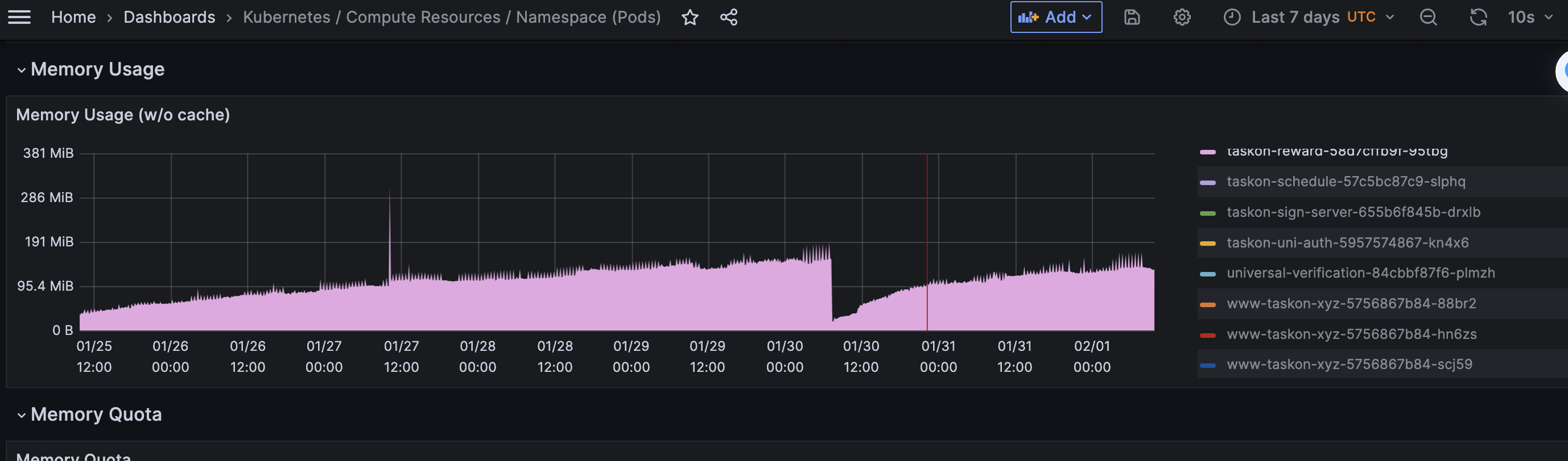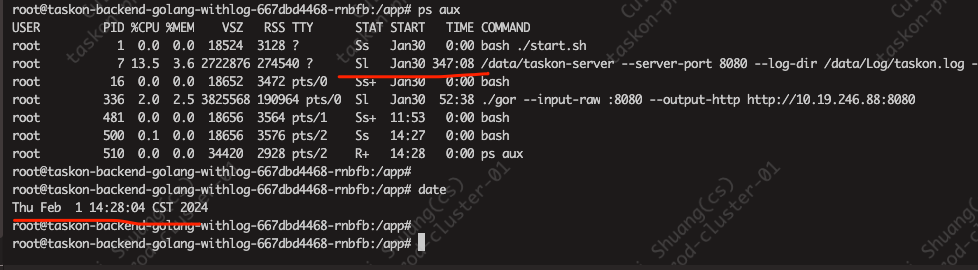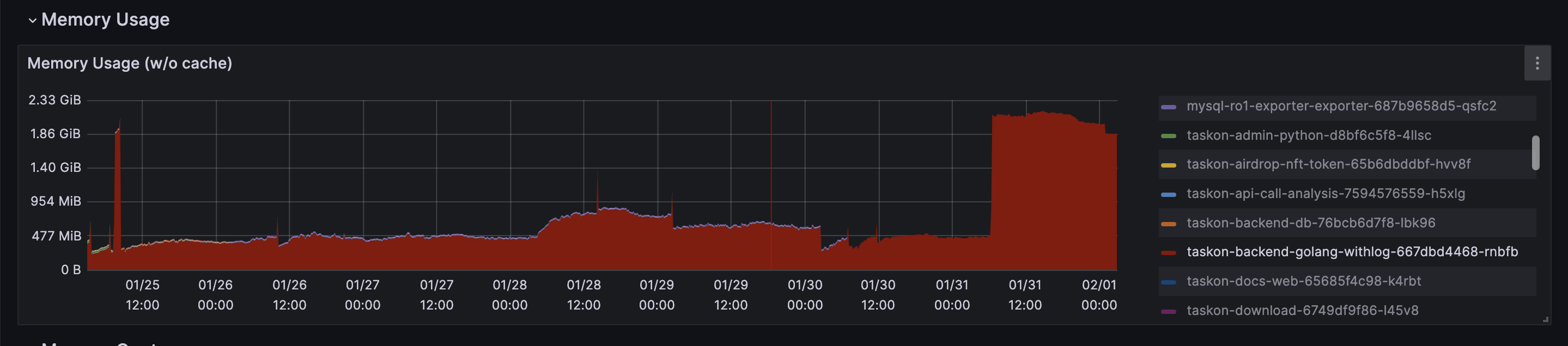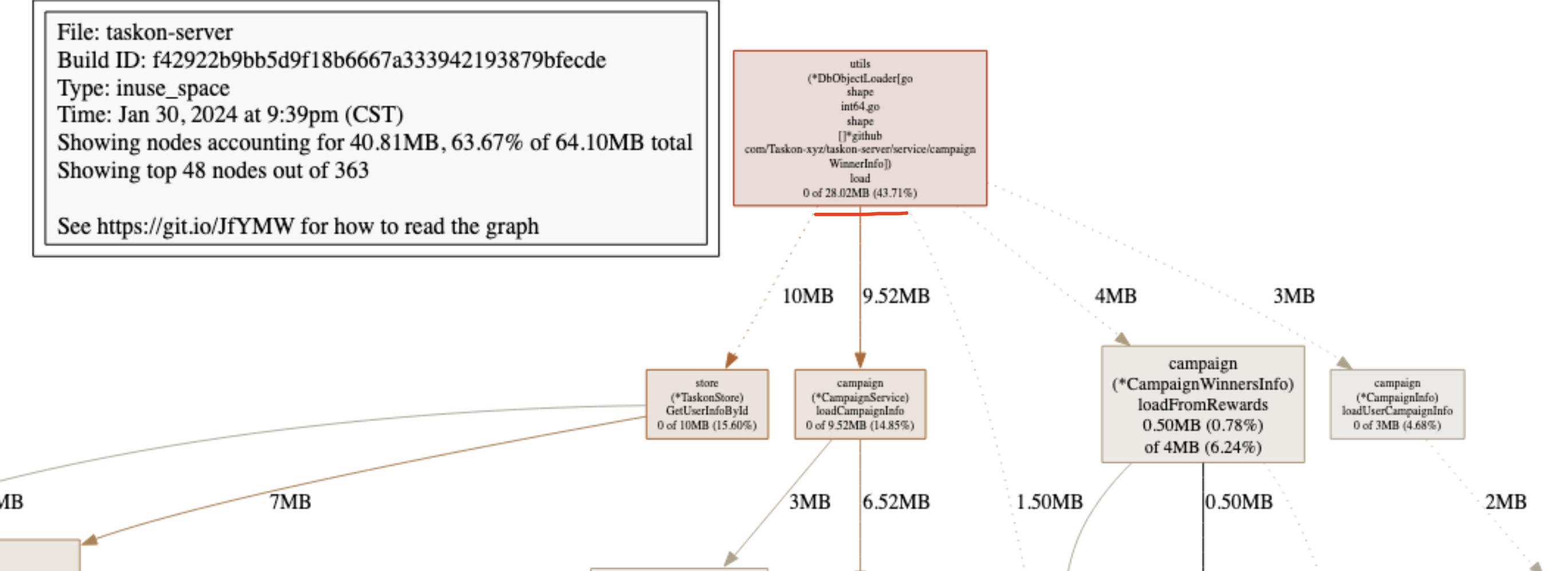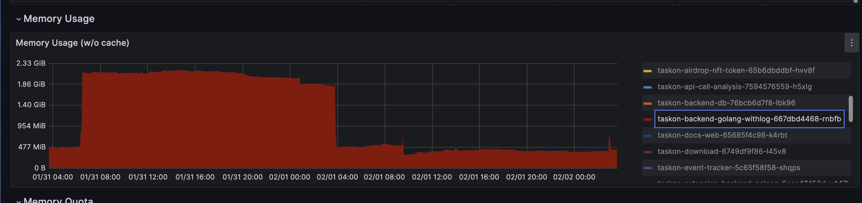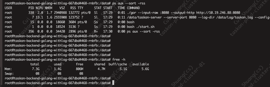 同事反应,从grafana上看到,taskon-server服务在昨天中午突然有内存突增,而且一直没有下来.