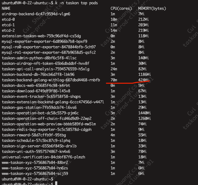 k -n taskon top pods
