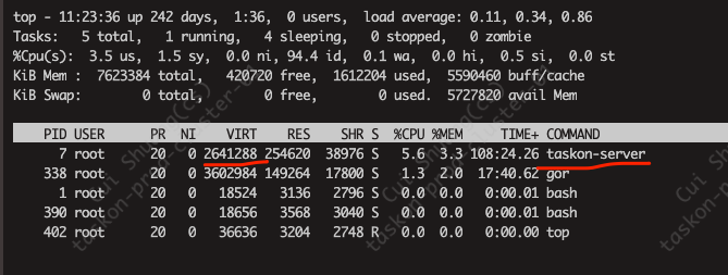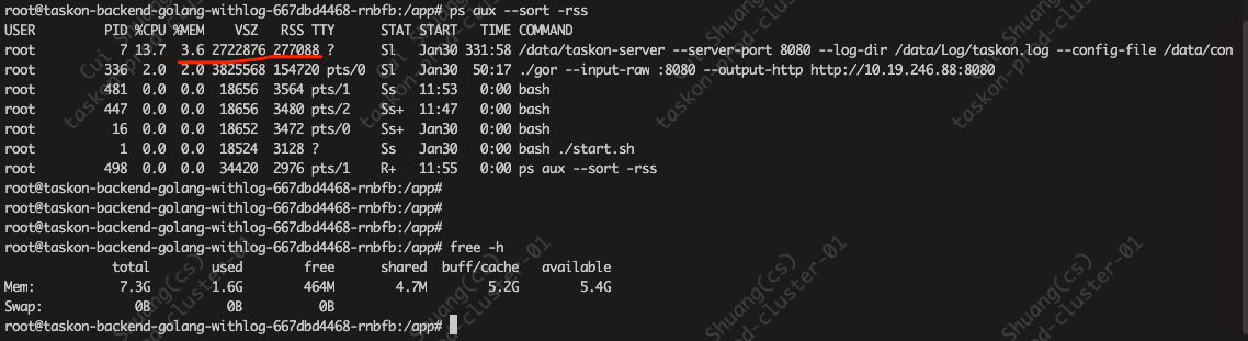 你帮我看下为毛生产taskon后端内存昨晚从480M突然飙升到2.2G?现在还是1.8G.系统倒是很平稳,没啥问题,响应也非常块