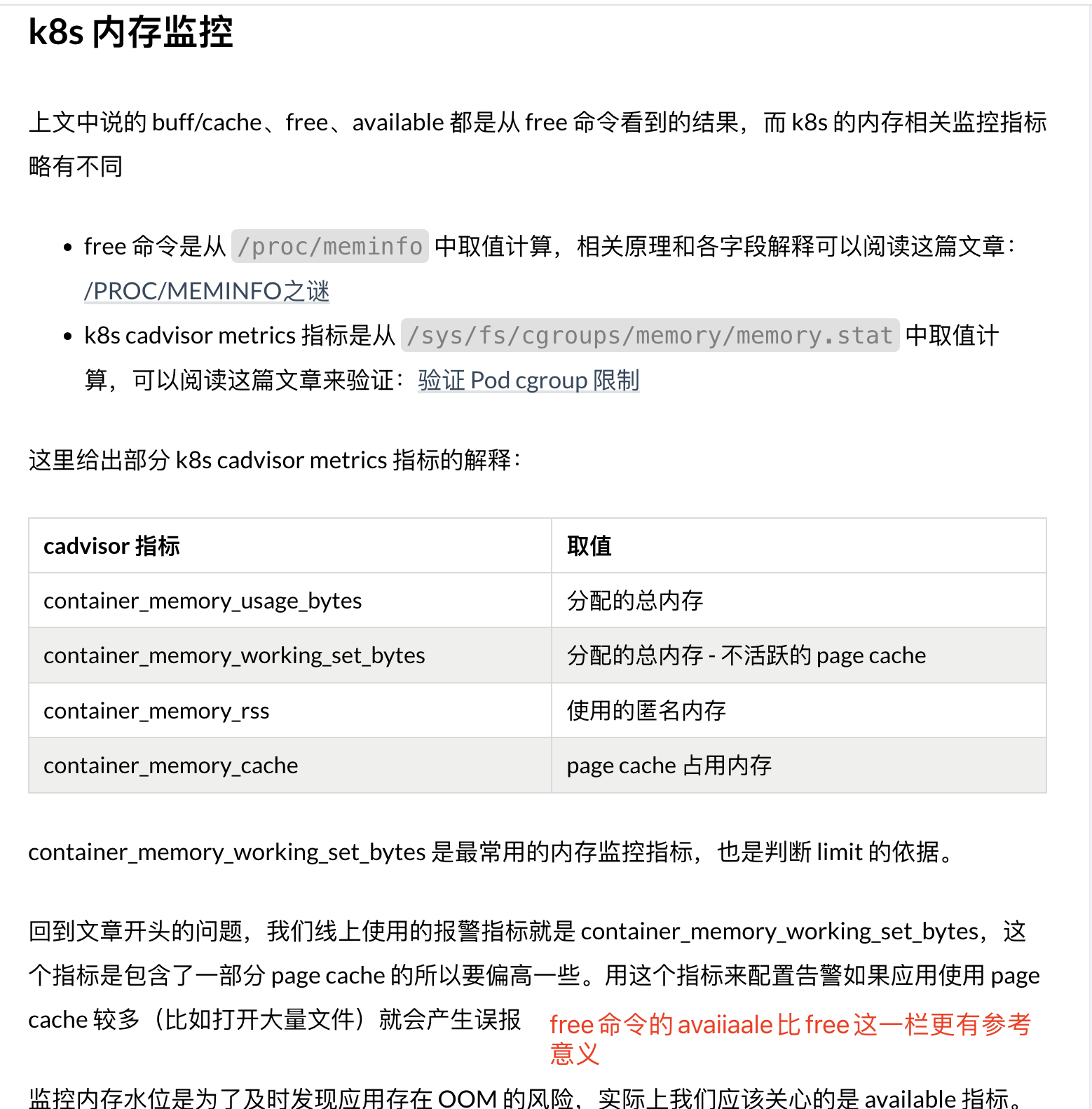 即通过free看到的内存 > kubectl top pods看到的Pod内存> 进程实际使用内存