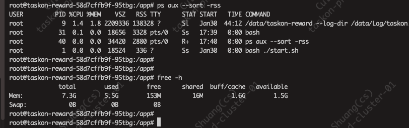 free -h , reward看着用的更多