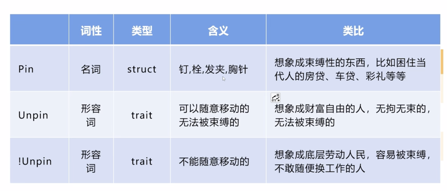 - !Unpin可以理解为一些普通的打工人,底层的劳动人民,容易被束缚,不能随便换工作等。