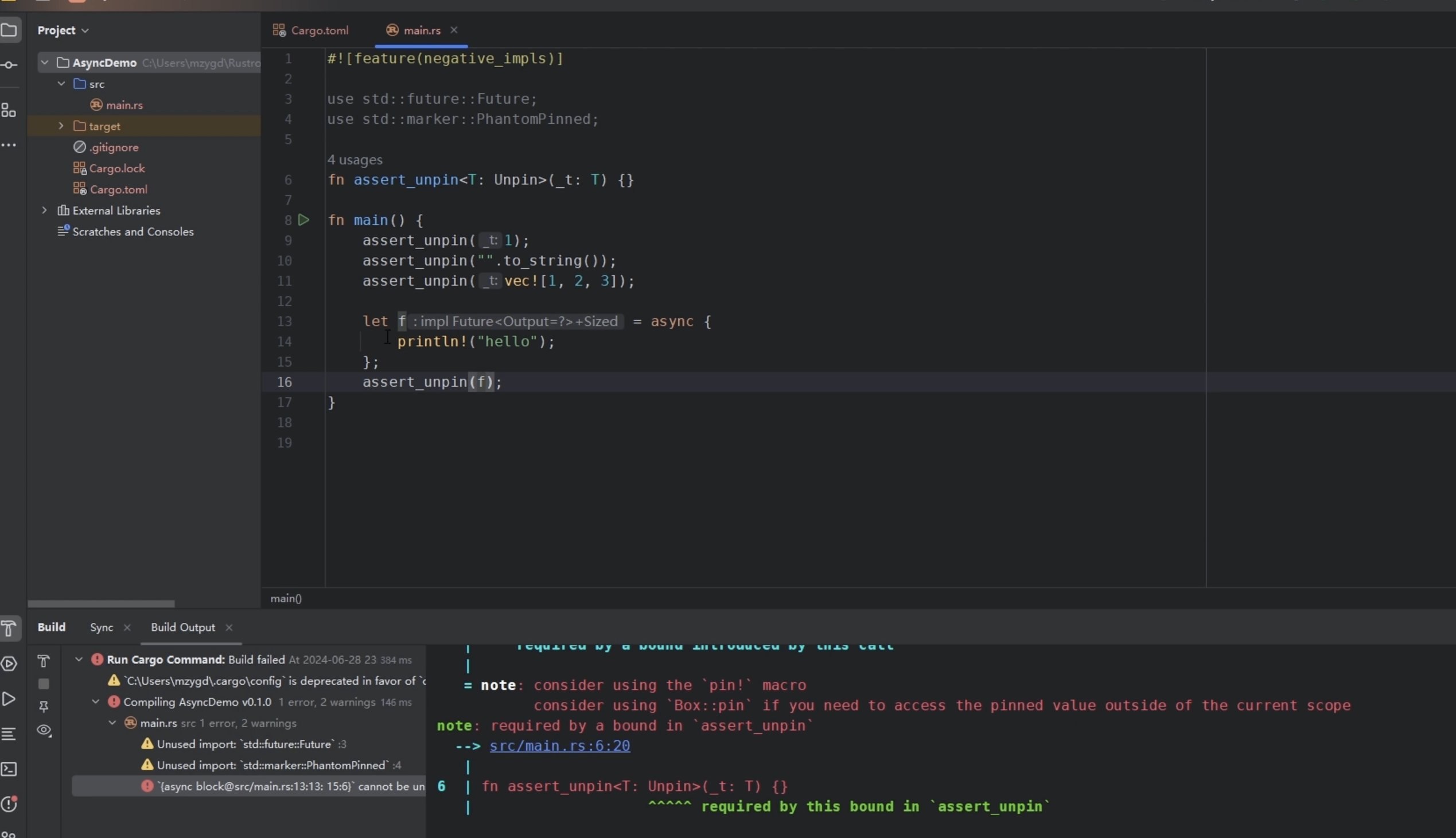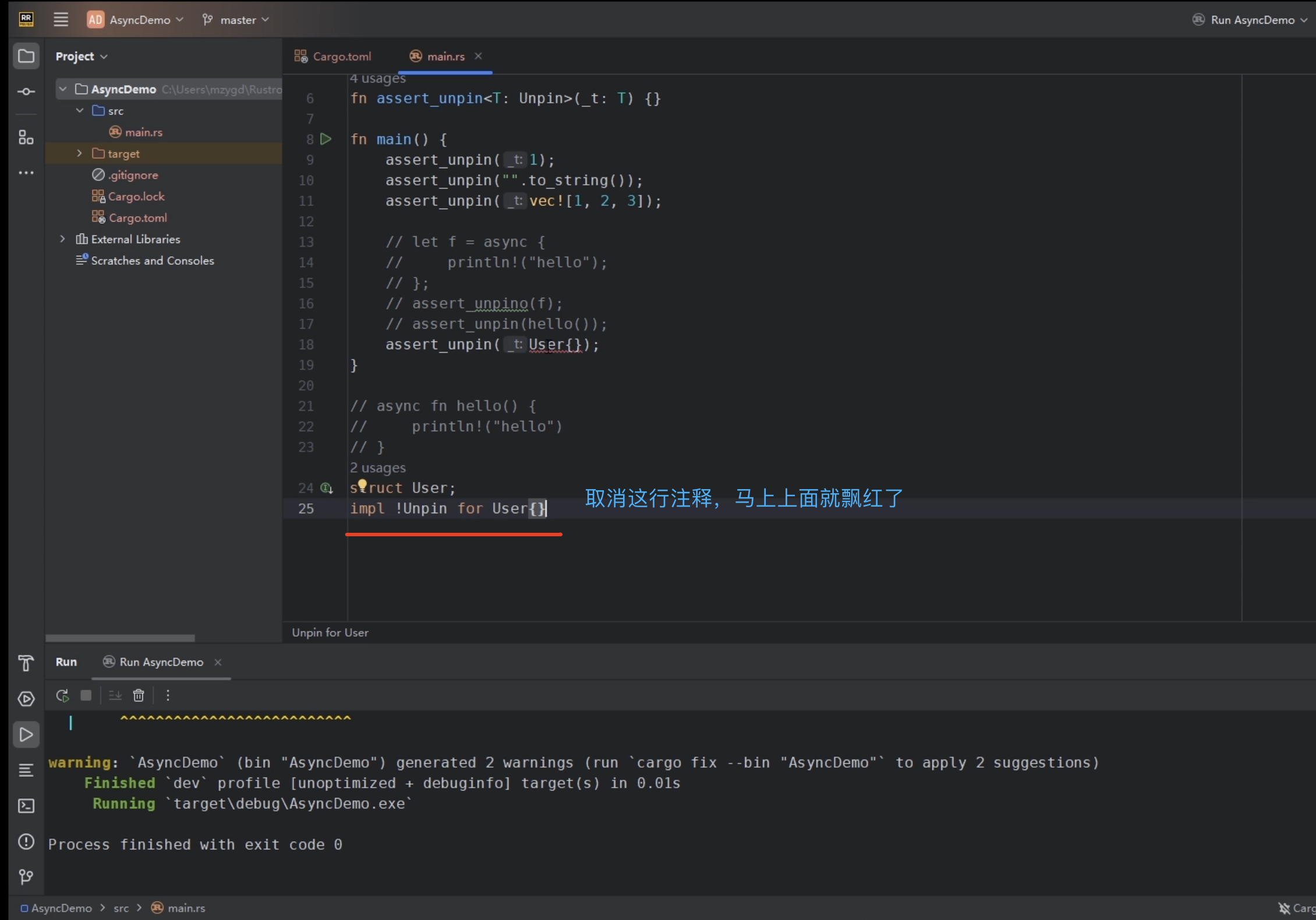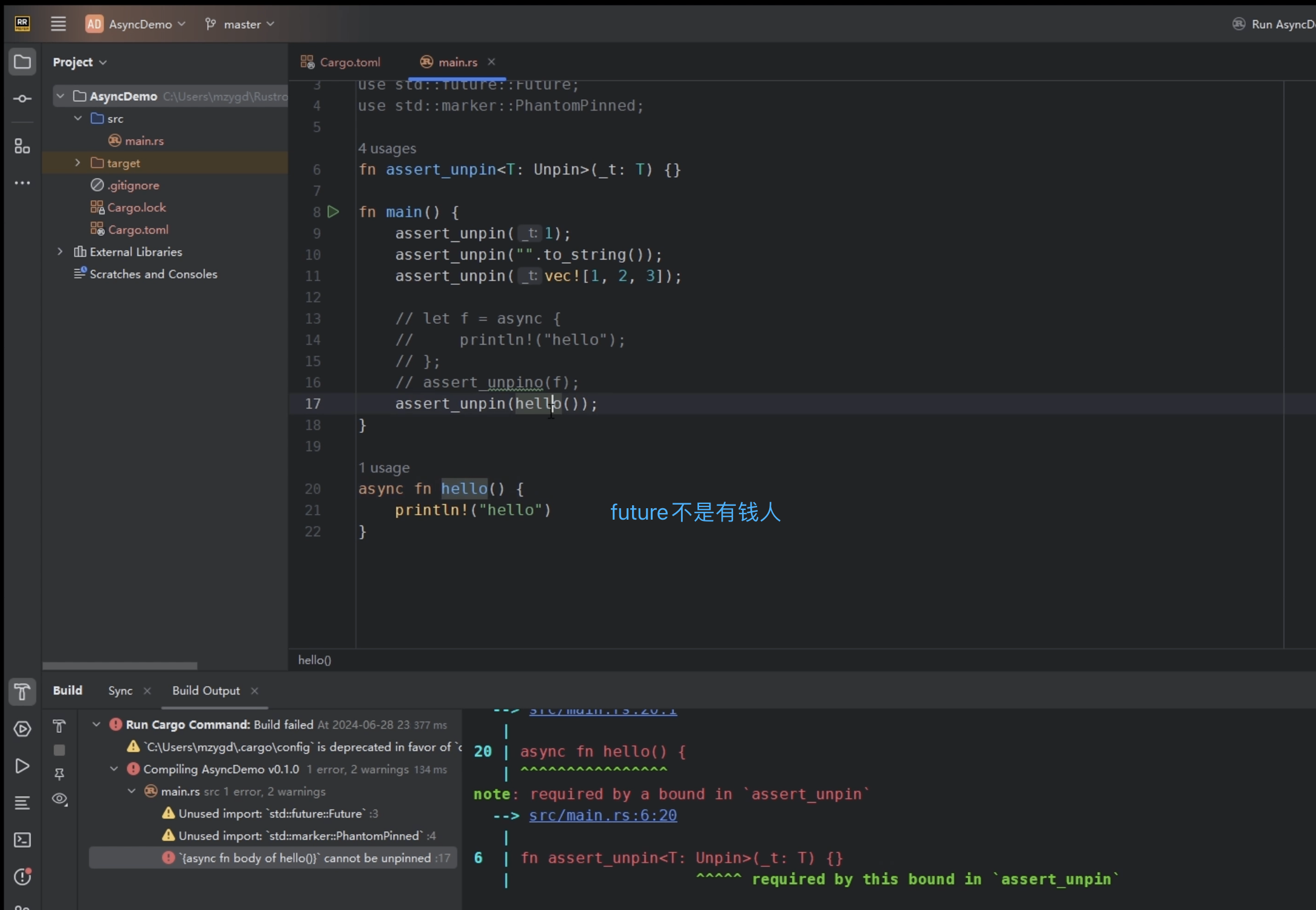 - 异步函数返回的Future,和第一点类似,也是!Unpin的。