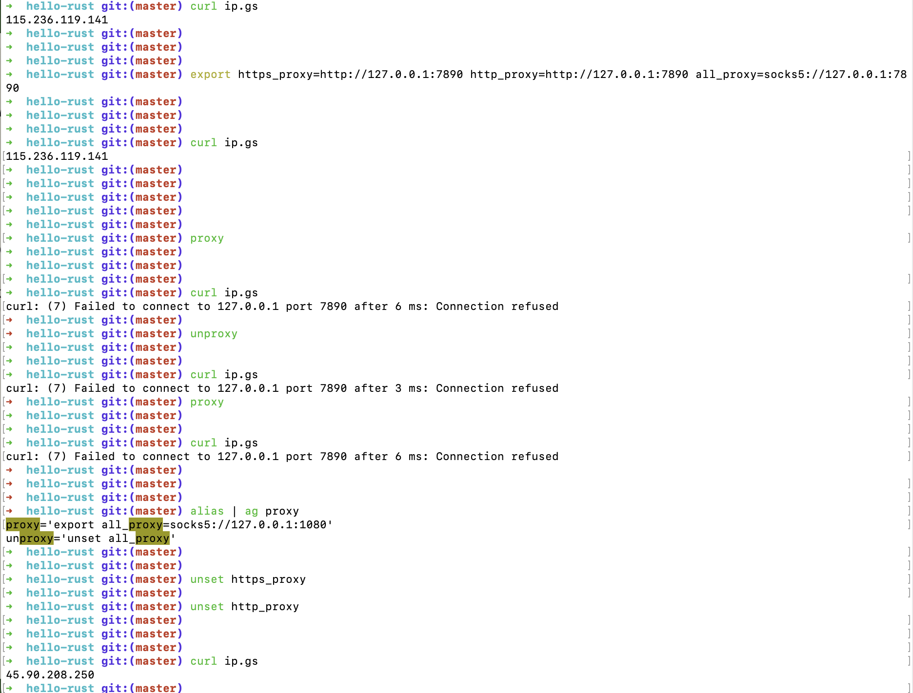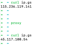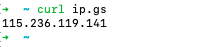 但在命令行中, curl ip.gs,发现还是之前的ip地址。