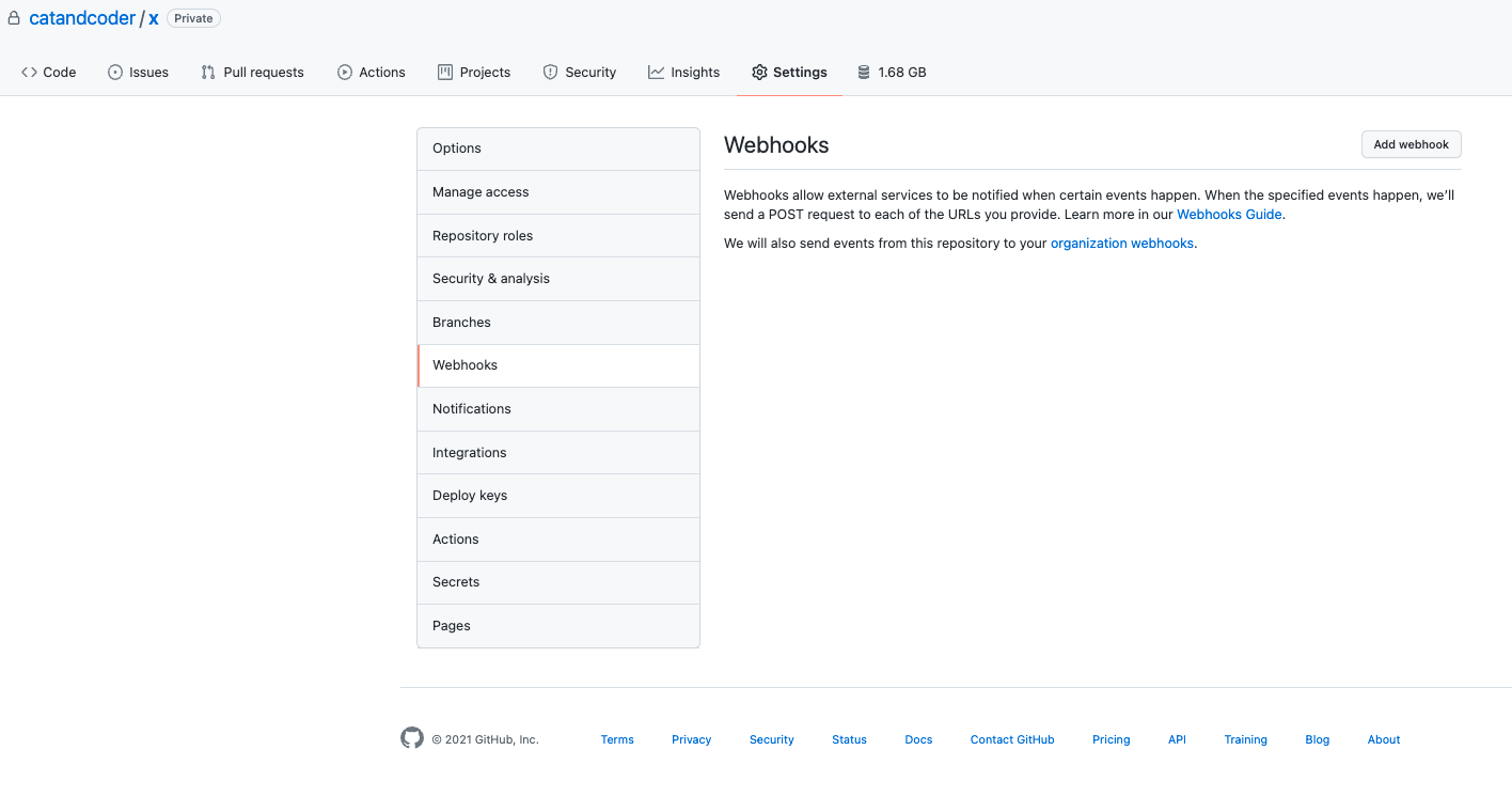 github提供了这样的hooks。我提供一个接口,每当有push事件时,这个hooks会去请求所提供的接口。