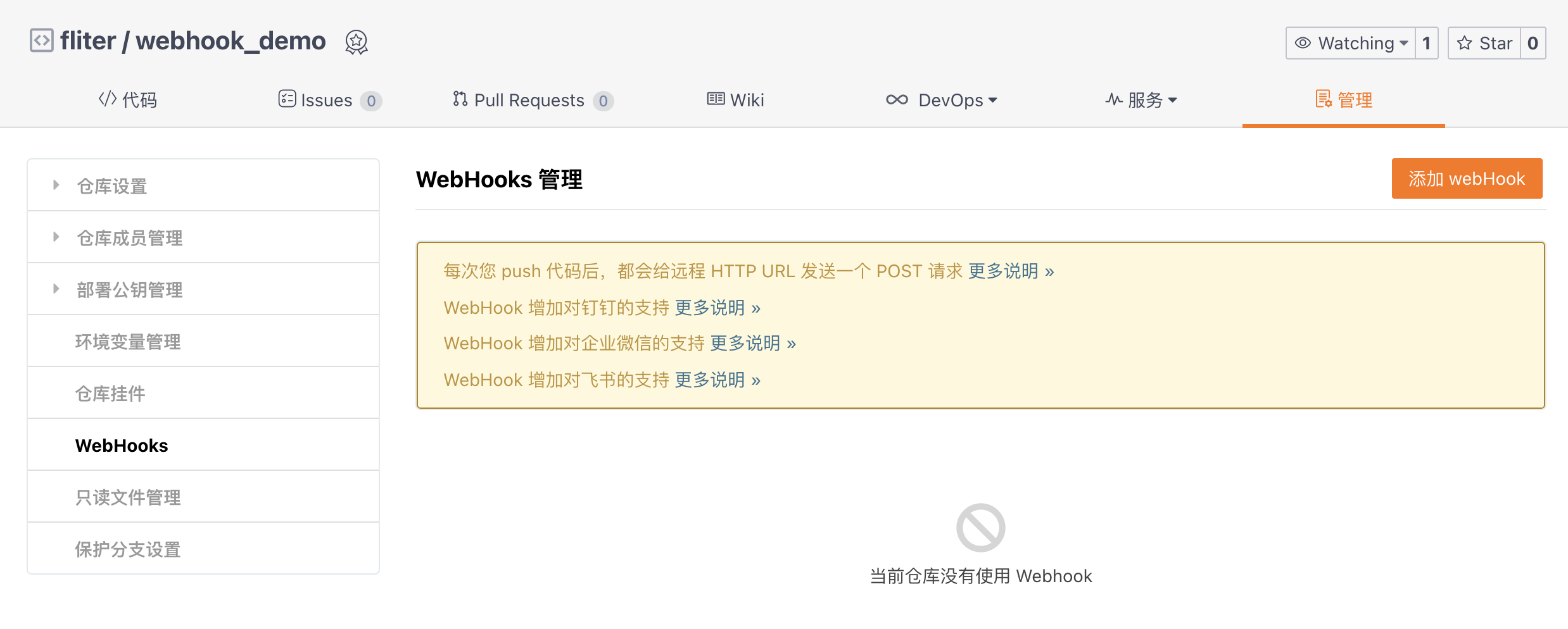 如果用gitee, 还可以集成进钉钉/企业微信/飞书/slack, 无需自己提供接口