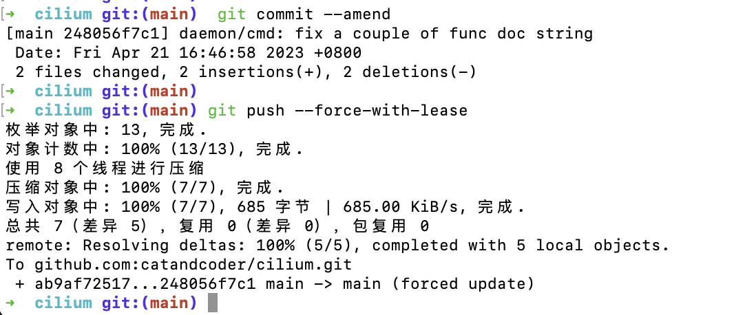 最后 git push -f origin branch-name (一般 git push -f 就行)