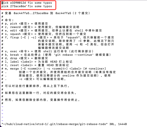 将第二行的pick改为squash(即压缩此提交)