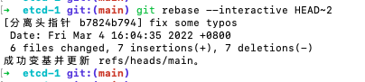 git rebase –interactive HEAD~[N]即交互式 rebase。