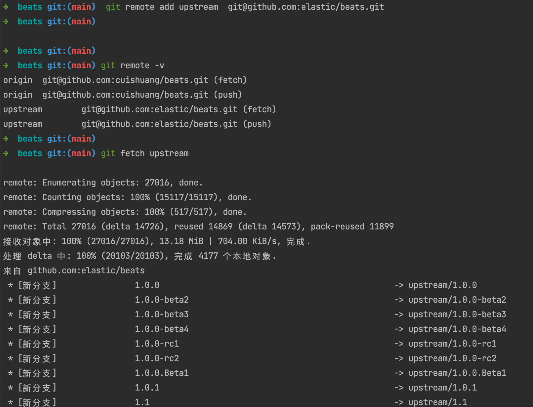 - 获取上游仓库的最新代码