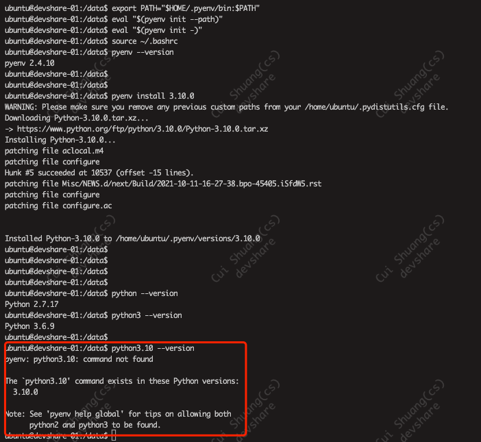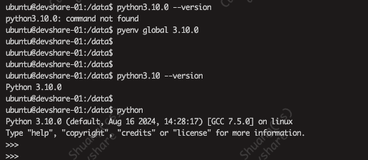 ~/.pyenv/shims或~/.pyenv/versions/3.10.0/bin在 PATH 的最前面。检查 pyenv 是否正确设置: