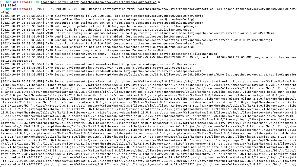sh zookeeper-server-start /opt/homebrew/etc/kafka/zookeeper.properties &