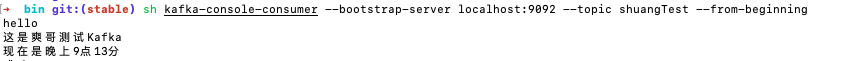 sh kafka-console-consumer --bootstrap-server localhost:9092 --topic shuangTest --from-beginning