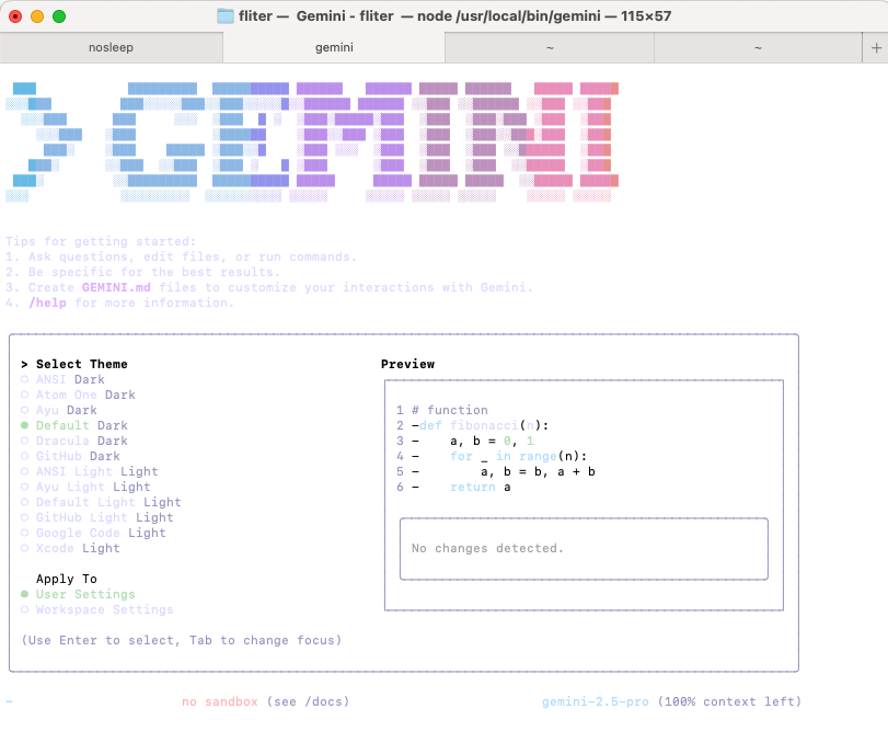 无论你选择哪种安装方式,首次运行 Gemini CLI 时,它会引导你进行一些初始设置: