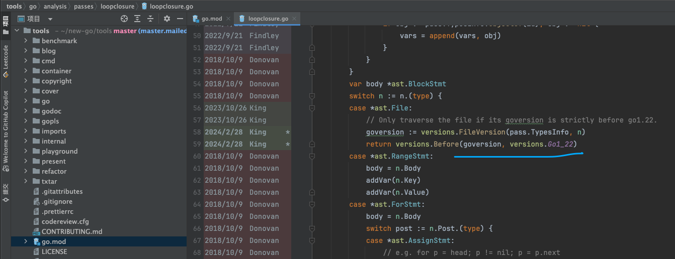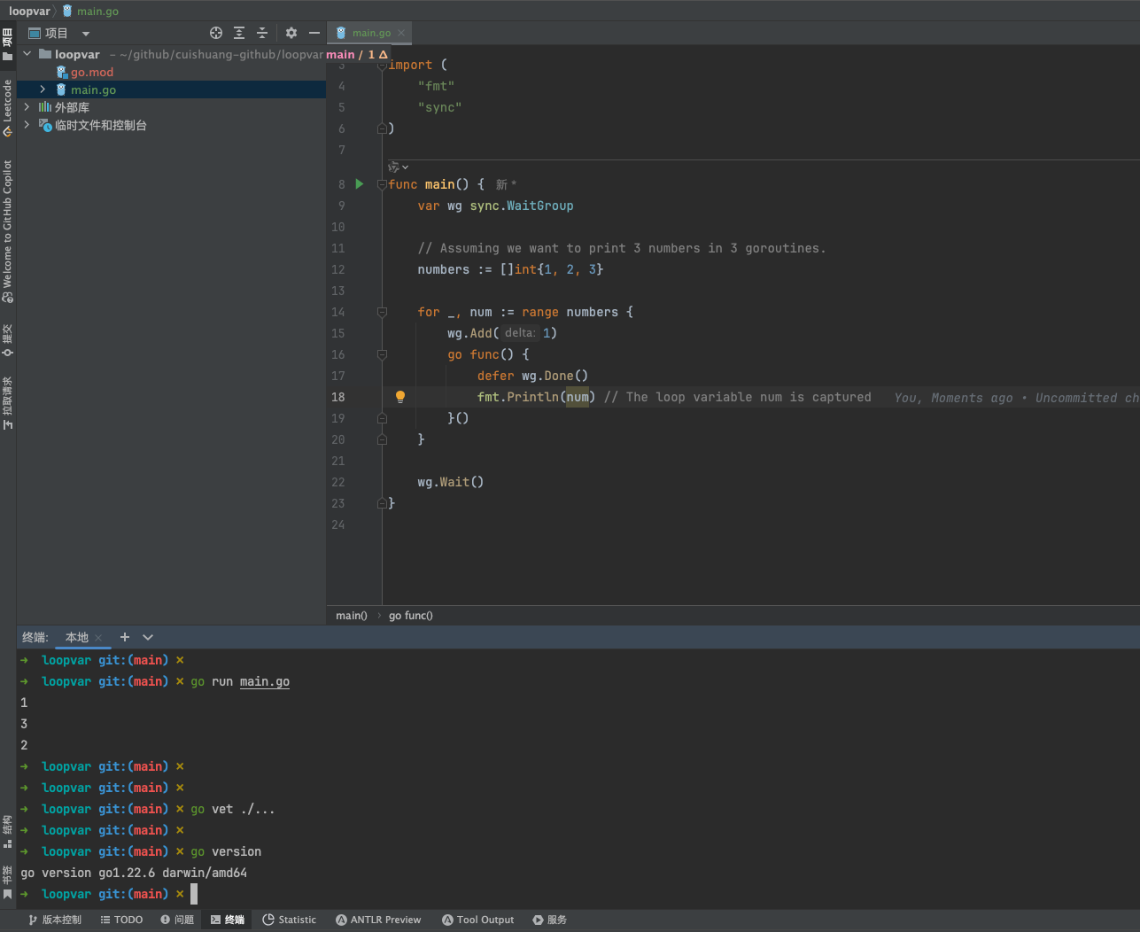所以但凡 go vet出现loop variable up captured by func literal的,可以认为go.mod里指定的go版本都低于go 1.22