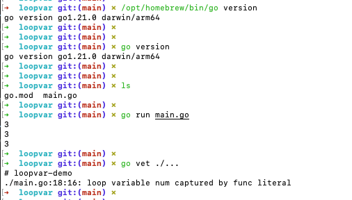 输出和go 1.22.6完全不一样,并且go vet能够检测到~