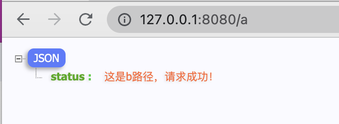 r.GET("/b", func(context *gin.Context) { context.IndentedJSON(200, gin.H{ "status": "这是b路径,请求成功!", }) })