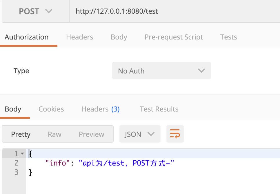 case "POST": c.IndentedJSON(200, gin.H{ "info": "api为/test,POST方式~", })