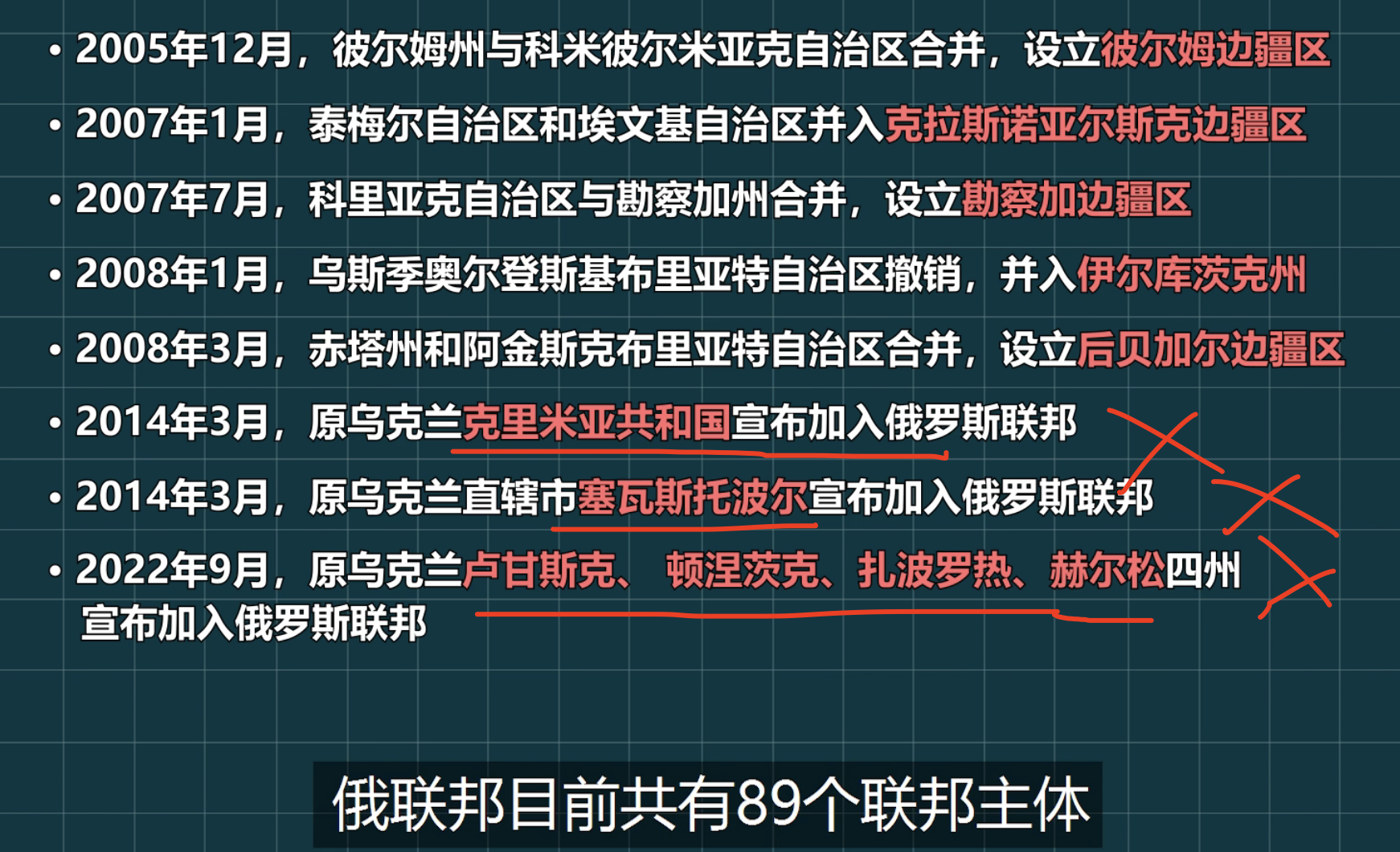 俄罗斯联邦由22个共和国,46个州,9个边疆区,4个自治区,1个自治州,3个联邦直辖市,合计85个联邦主体组成