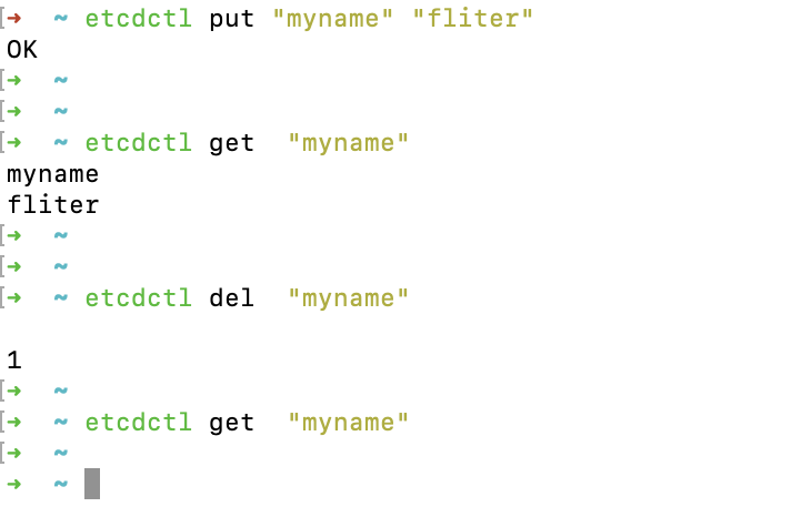 etcdctl put "myname" "fliter"