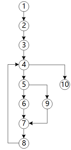 环形复杂度 $V(G)=M-N+2$,其中,E是流图中边的条数,M是结点数。