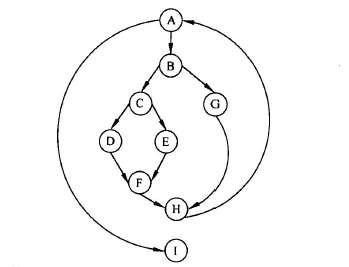 其中,V(G)是有向图G中环路数,m是图G中弧数,n是图G中结点数,p是图G中强连通分量个数。在一个程序中,从程序图的入口点总能到达图中任何一个结点,因此,程序总是连通的,但不是强连通的。为了使图成为强连通图,从图的出口点到入口点加一条用虚线表示的有向边,使图成为强连通图。这样就可以使用上式计算环路复杂性了。