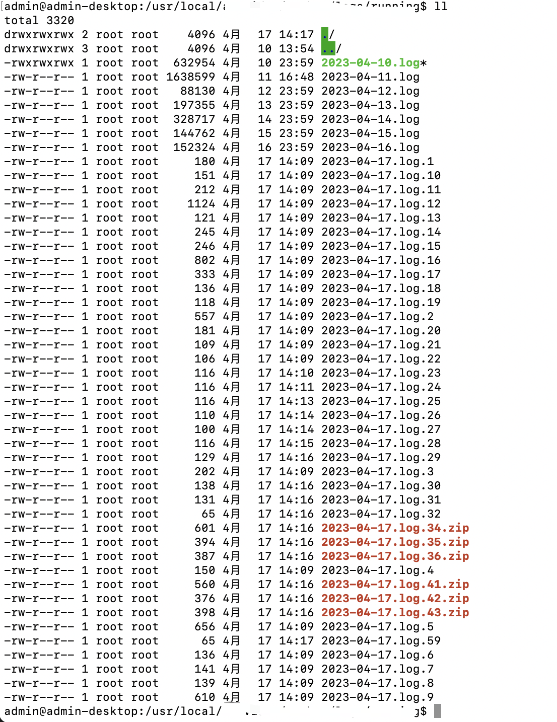如下图,想将04-17产生的日志文件全部删掉