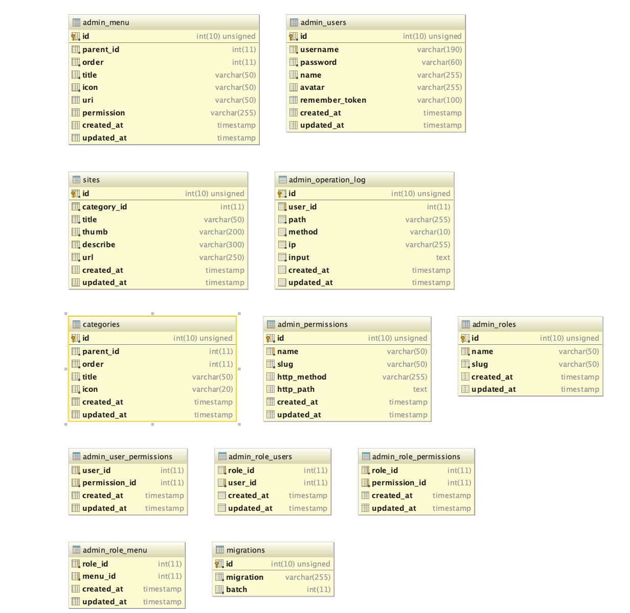 可以快速查看各张表之间的关系!